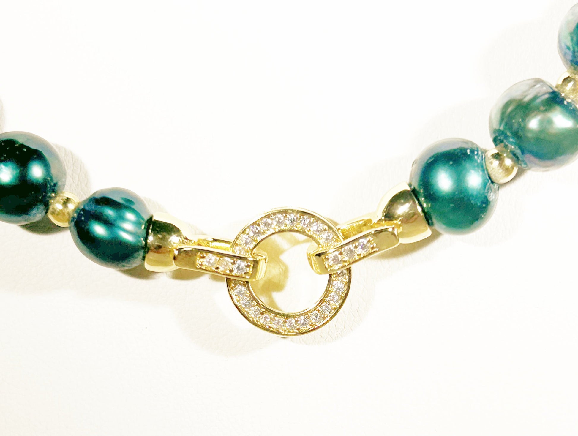 Elevate your style with this stunning 18-inch freshwater pearl necklace featuring vibrant blue 8mm pearls accented by elegant gold spacers. The sparkling rhinestone clasp adds a touch of refined glamour, making it perfect for both special occasions and everyday elegance. This timeless piece enhances any outfit with its rich color and sophisticated design.