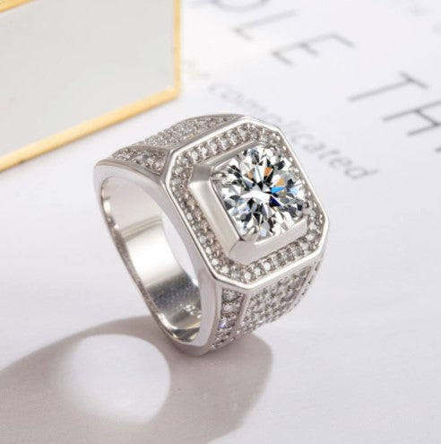 This is the best quality sterling silver ring made for a man. Guaranteed .925 silver, The Cubic zirconia stone is the finest grade offered and is a large 2.75 Carat CZ a magnificent stone, with clarity and brilliance to be seen from every movement of the hand.